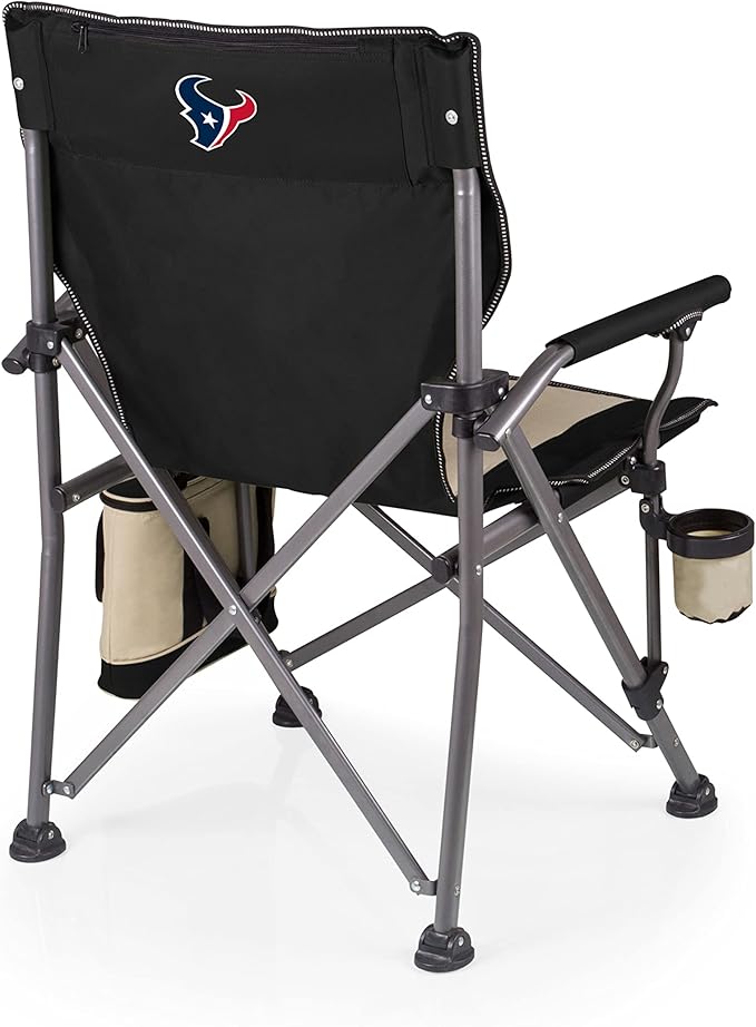 • GET OUTSIDE - The NEW NFL Houston Texans Outlander Folding Camping Chair with Cooler by Oniva, a Picnic Time brand, is a heavy duty beach chair with drink holder, 9 can cooler, and easy carry transport bag