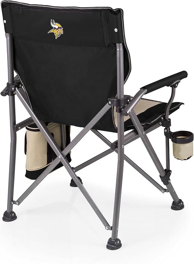 • GET OUTSIDE - The NEW NFL Minnesota Vikings Outlander Folding Camping Chair with Cooler by Oniva, a Picnic Time brand, is a heavy duty beach chair with drink holder, 9 can cooler, and easy carry transport bag