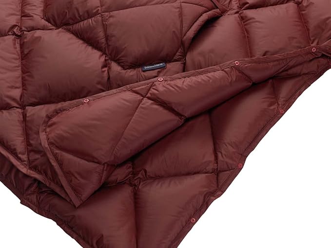 • Down-insulated hooded poncho that can be worn, or laid on the ground as a blanket
