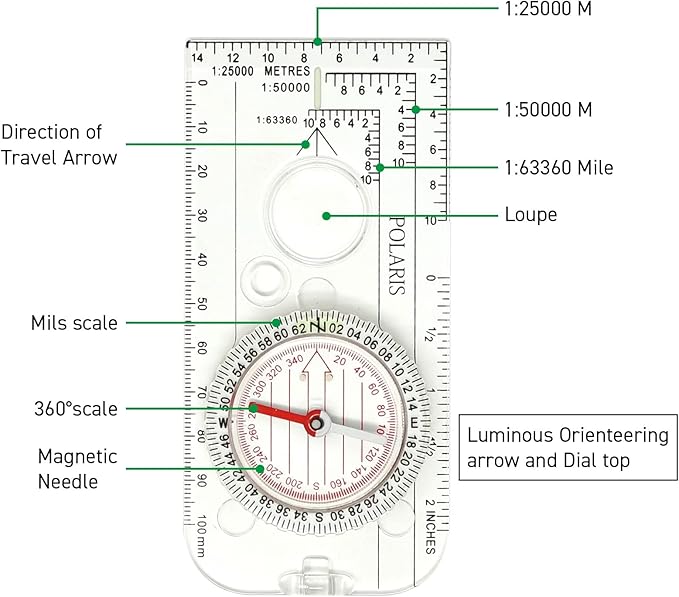 POLARIS Pro Map Compass 360 Degrees & 640 Mils 2-in-1 Scales Waterproof Lightweight Navigation Platecompass/Survival Orienteering Backpacking Military Tactical