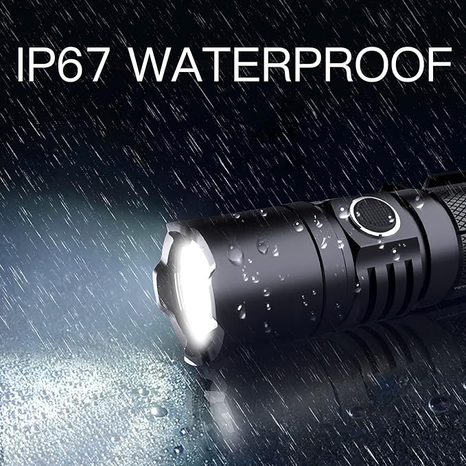• 【WATERPROOF & SMART】IP65 rating of this Tactical Light Flashlight, best using for either indoor or outdoor application. Skid-proof, waterproof, explosion-proof and shockproof. Great for Camping, Hiking, Hunting, Night Vision, and Emergency. Easy to carry with you and small enough in your handbag, drawer, or car compartment.