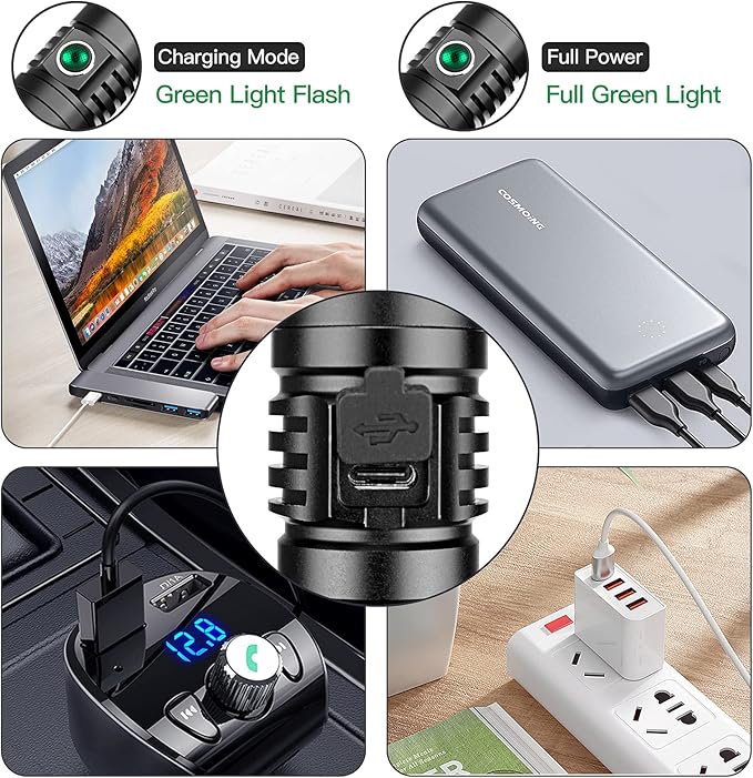 • 【TYPE-C RECHARGEABLE】Recharge the handheld flashlight through any USB port, such as computer, powerbank or in the car. Use rechargeable battery save lots of battery cost and environmental friendly.