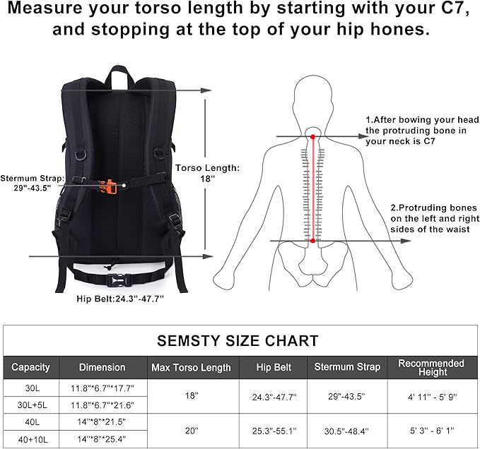 • Upgraded Design: All the zipper are stitched pleat and reinforced of these hiking backpacks for women. NO WORRIES ABOUT ZIPPERS STOP WORKING AFTER SLIGHTLY USED. Adjust the chest & waist straps to better fit your frame. Use the outside straps to hang your sleeping or other gears