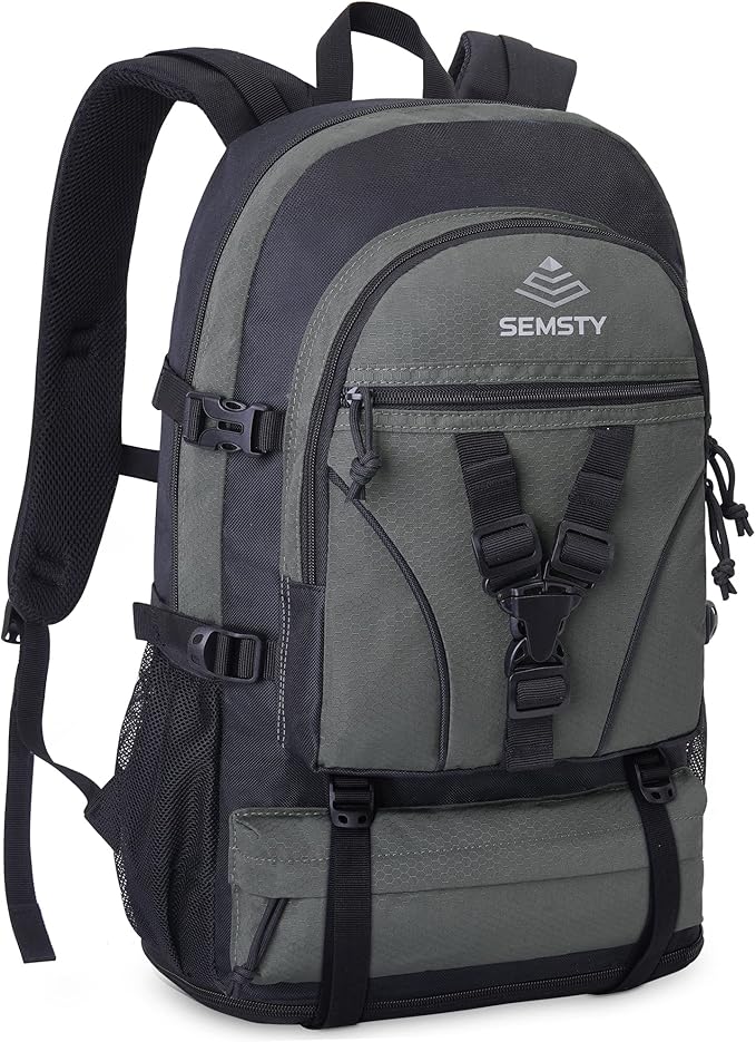 • Expandable & Extra Large Capacity: This hiking daypack can be expanded by using the zipper at the bottom(from 30l to 35l). Roomy enough for a CARRY ON. The side buckles makes your stuffs safe and makes the backpack not too bugling even it's fully packed. Multi-compartments help you organize all your essentials like clothes, camping supplies, gears, etc. Perfect for outdoor activities