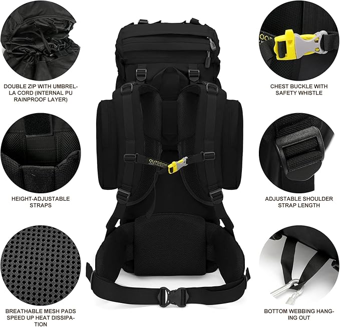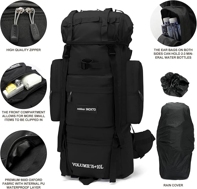 • 👣【COMFORTABLE AND BREATHABLE】: This lightweight & comfortable hiker backpack is specially designed for outdoor enthusiasts. The IX INOXTO hiking bag is well constructed with breathable mesh padding and a ventilated back system, Breathable mesh shoulder straps with plentiful sponge padding help relieve the stress from your shoulder and ventilation, speed up heat dissipation. The ergonomically-designed structure gives you more comfortable experience. Perfect backpack for men, women and youth.