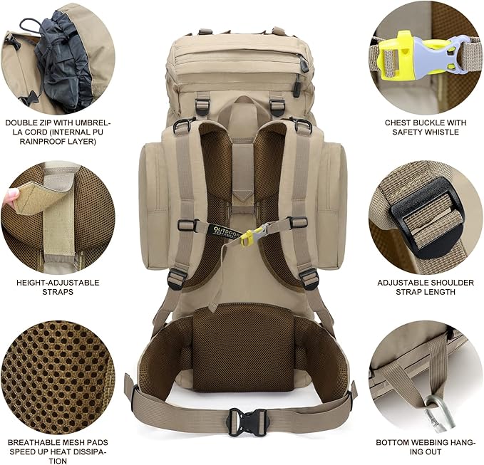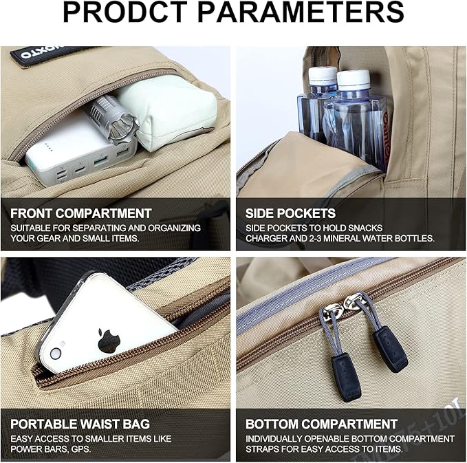 • 👣【VERSATILE QUICK TRIP PACK】: Our IX INOXTO Hiking Backpack is made of sturdy ripstop water-resistant Polyester Material. KAM zippers - durable zipper, well-sewn craftsmanship, high dense stitching. Built with strong stitching in the places you need it such like the shoulder straps, carrying handle, bottom and other places.