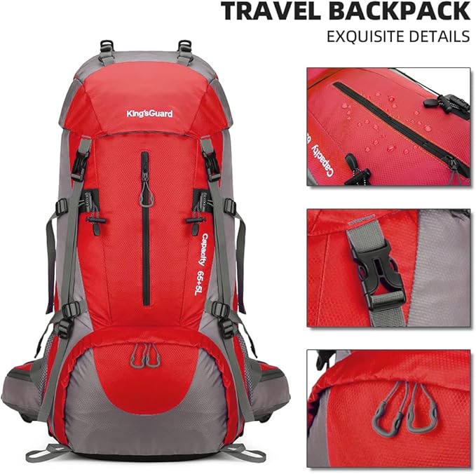 • 【After-sales Guarantee】The kings guard 70l hiking camping backpack with rain cover is of high quality, sturdy and thick. The kings guard 70l hiking backpack is an ideal choice for day trips, weekend getaways, and even longer journeys.【 ONE YEAR QUALITY SUPPORT 】
