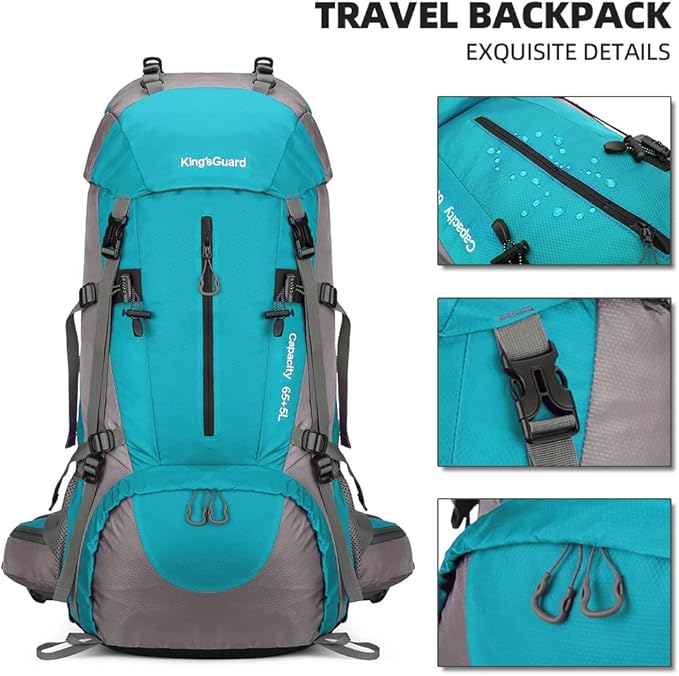 • 【After-sales Guarantee】The kings guard 70l hiking camping backpack with rain cover is of high quality, sturdy and thick. The kings guard 70l hiking backpack is an ideal choice for day trips, weekend getaways, and even longer journeys.【 ONE YEAR QUALITY SUPPORT 】