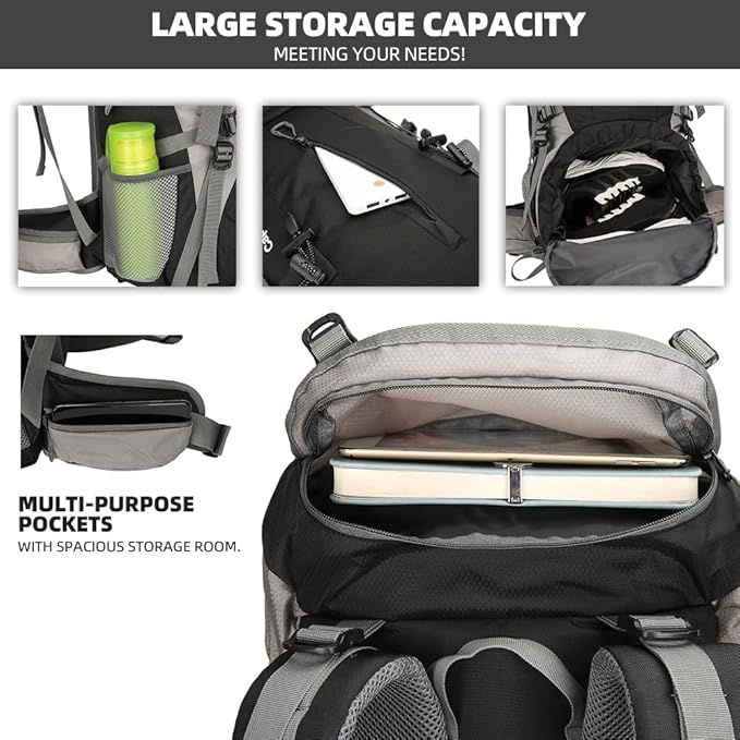 70L Camping Hiking Backpack with Rain Cover Waterproof Backpacking Backpack for Hiking Treeking Climbing Outdoor (Black)