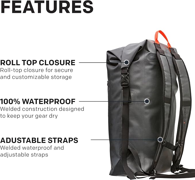 • 100% Waterproof Welded Construction: The Bootlegger Roll Top 30L backpack is built with a rugged and reliable 100% waterproof welded construction. This ensures that your gear and valuables stay completely dry, even in the most challenging fishing environments or during unexpected weather conditions.