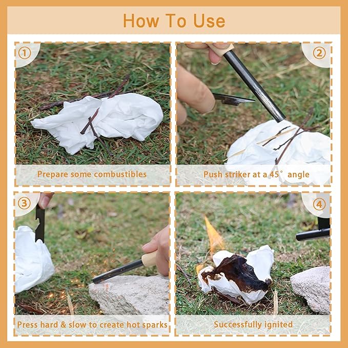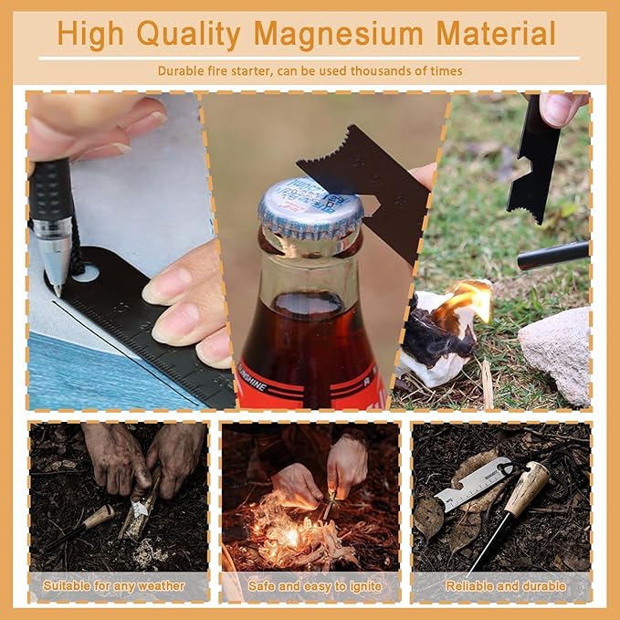 • RELIABLE AND DURABLE: Our fire starter crafted from high-quality ferrocerium, much more reliable than matches, these rods are built to last and provide reliable fire ignition even in adverse conditions, ensuring you're always prepared for outdoor adventures.