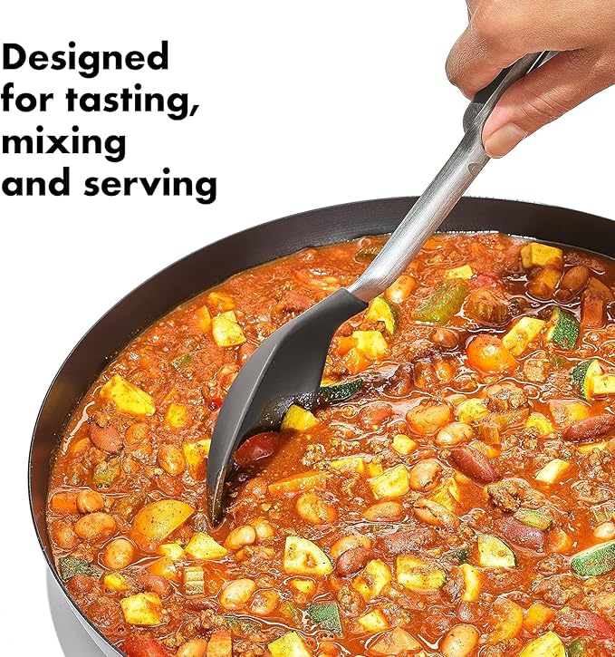 • Silicone Spoon is shaped for chopping, stirring, tasting and serving