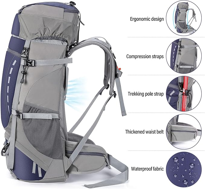 • Multiple Scenarios : The back panel of the hiking backpack ensures your load is secure and balanced for stable and comfortable hiking. This outdoor backpack has a cool design for both men and women. Great for hiking, camping, traveling, trekking, climbing, hunting, fishing, skiing, mountaineering and many other outdoor activities.