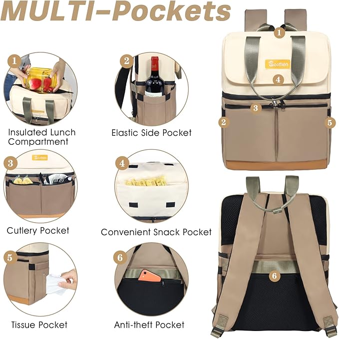 • 👜Stylish Appearance and Ideal Gift: Our Convertible portable cooler can use it as a chic tote, a hands-free backpack, making it super versatile! Arrive in style—back trolley sleeve for easily sliding over your luggage/suitcase handles, dual padded shoulder straps provide optimum comfort. With this stylish travel cooler backpack, you will get a lot of compliments. Moreover, It's a great gift idea for women, perfect for lunch, picnic, travel, hiking, camping, biking, park and Disney.