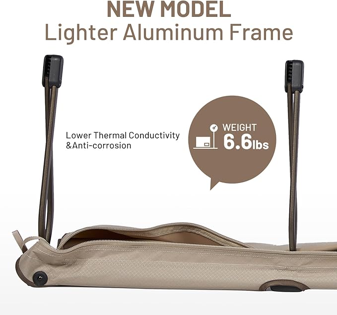 TIMBER RIDGE Lightweight Aluminum Camping Cot, 20-Second Quick Set-Up Folding Cot with Zipper Closure, Portable Carry Bag Included for Camping, Travel and Outdoors, Support up to 225lbs, Tan