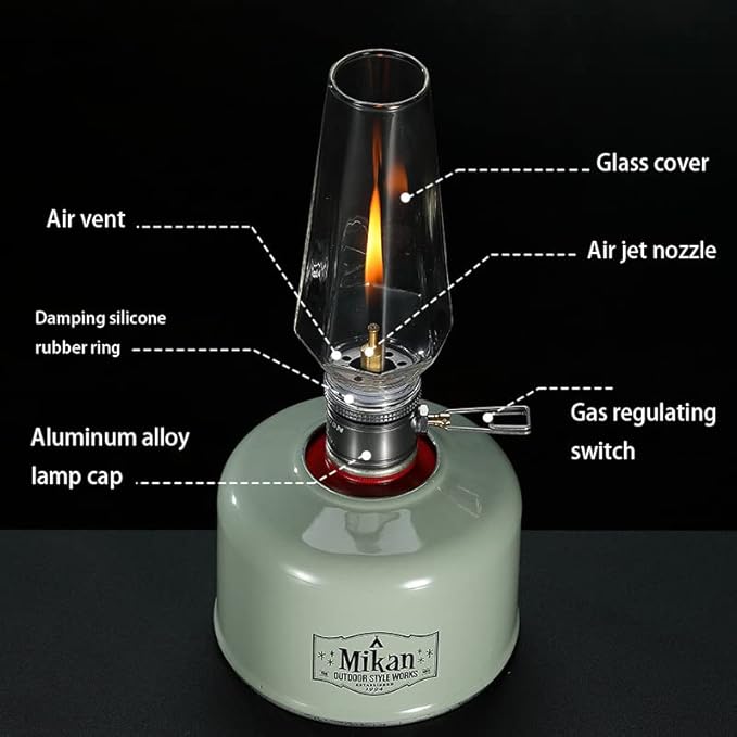 • Uses isobutane gas as fuel (gas fuel not included). This gas lantern can be used on a screw-on style fitting isobutane gas fuel canister (EN417 Lindal Valve type gas canister).