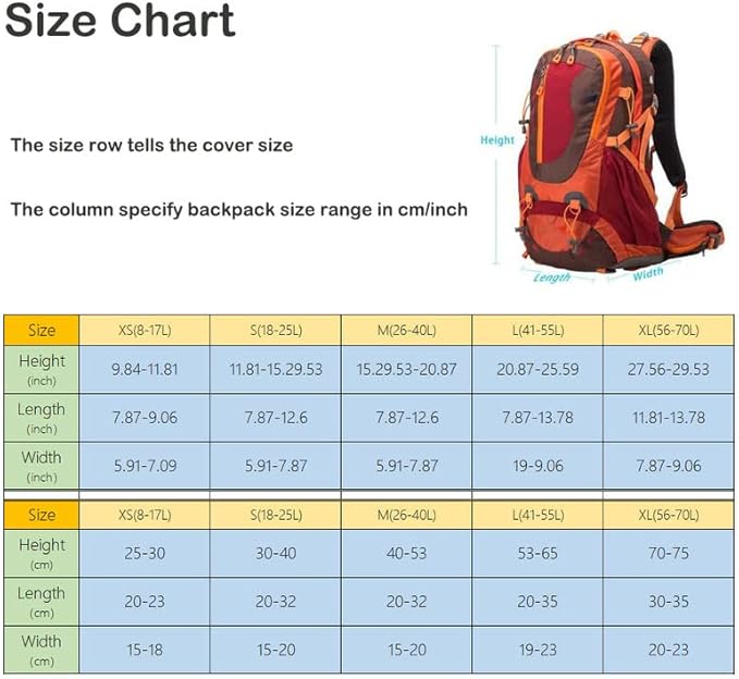 • Multiple Sizes:5 sizes backpack rain covers are optional, fit all types of 8 to 70 L backpacks. Please kindly refer to the size chart before purchasing.