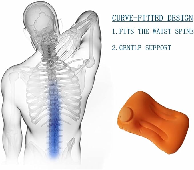 • ✅ Soft and comfortable - Ergonomic design that conforms. self inflatable pillow Provides you with a comfortable sleep and superior neck and back support during travel for a more comfortable sleep! The air valve is located on the very edge of the small side of the pillow, so you won't feel anything while sleeping. In addition, it can be used as lumbar support for office chairs.