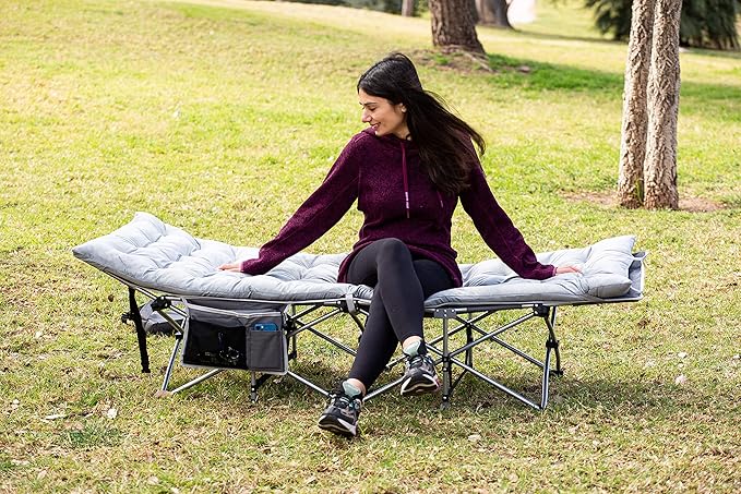 Zento Camping Cot and Mattress Folding Outdoor Travel Bed - Heavy Duty Max Load 450 LBS Premium Quality Cot Bed with Pad for Comfort Sleeping for Travel Home and Anytime Use