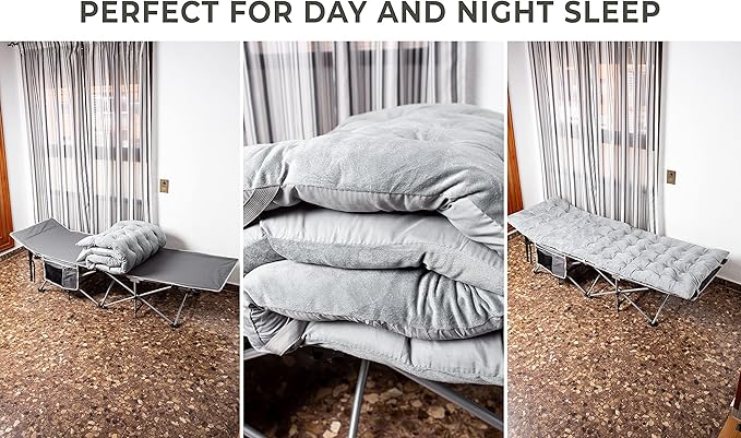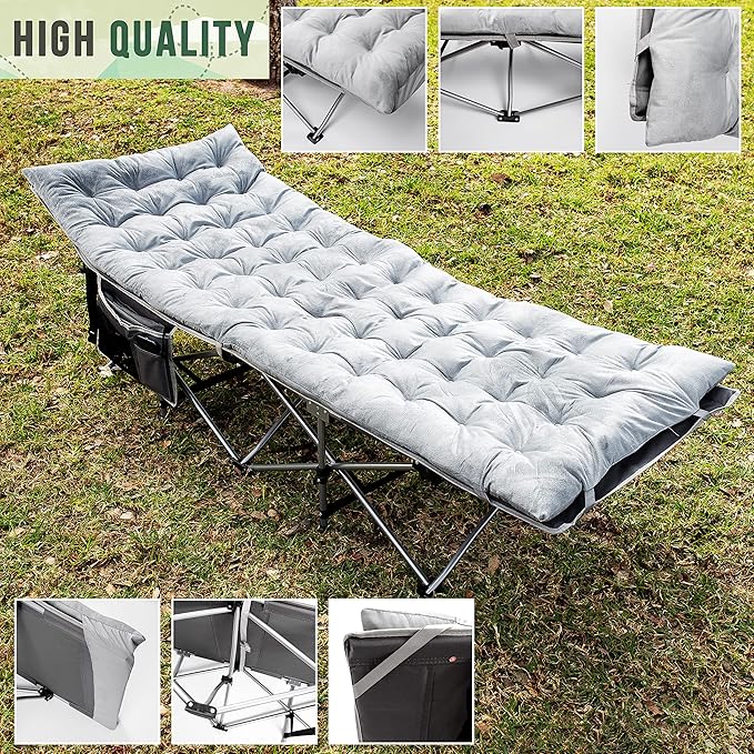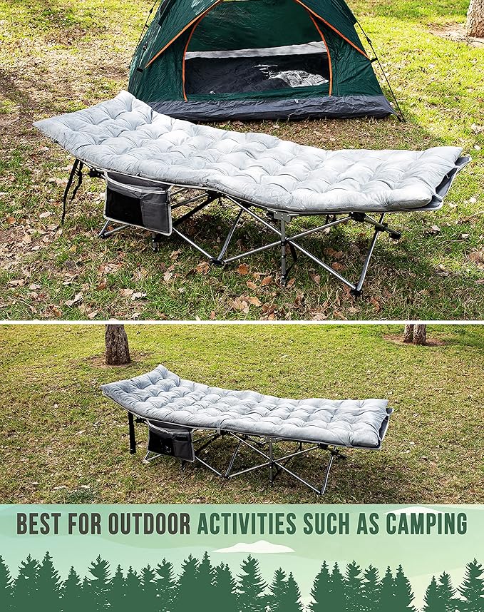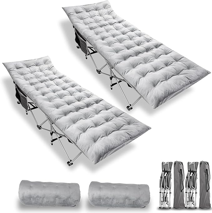 Zento Camping Cot and Mattress Folding Outdoor Travel Bed 2 Pack - Heavy Duty Max Load 450 LBS Premium Quality Cot Bed with Pad for Comfort Sleeping for Travel Home and Anytime Use