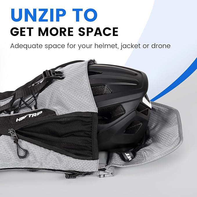 • 【Ultra-lightweight Design】Designed with waterproof 600D Oxford Cloth, Heytrip Hydration Backpack weighs only 427 grams and can hold 6.56 liters in the main compartment. Just to unzip the compartment to get adequate space for your helmet, jacket or drone. In addition, the left and right mesh pocket are enough for 330ml bottles. Our backpack fit any essential in your backpack water bottle without overloading yourself.