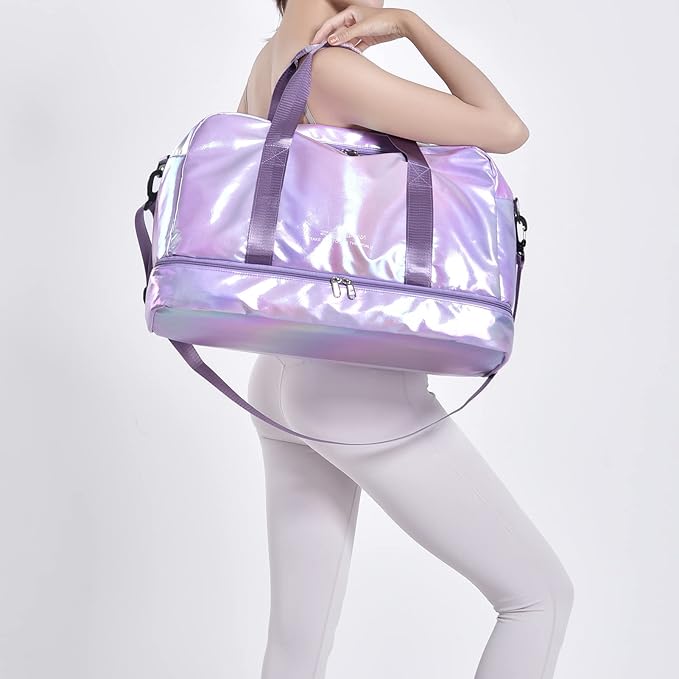• Beautiful Companion: Our gym bag comes in fantastic shades. The bag surface, made with unique fabric, gives off a pearl glow, reflecting beautiful colors under light. This gym bag with a shoe compartment is a reliable companion for travel and indoor and outdoor sports, suitable for all ages
