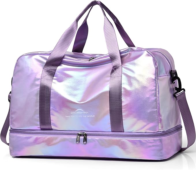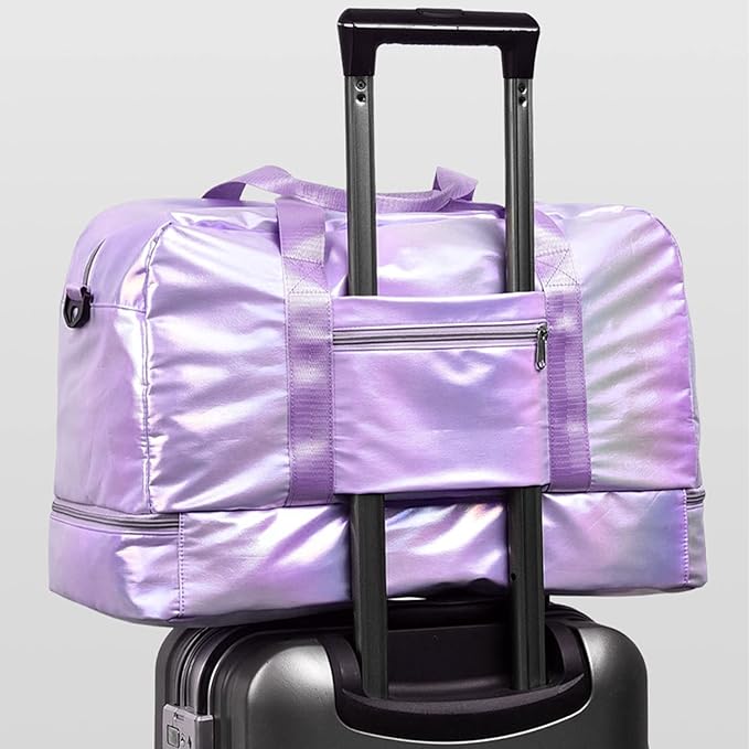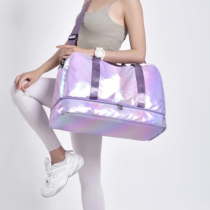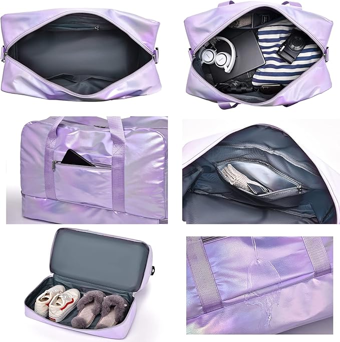Travel Bag, Gym Bag for Women, Weekender Bags for Women, 40 L Waterproof Duffel Bag, with Shoe and Wet Compartments, Perfect for Gym,Overnight and Travel Use (Purple)