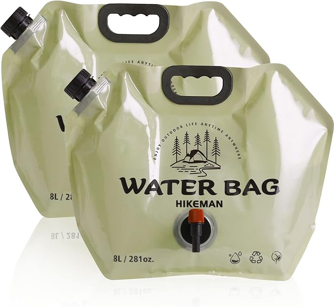 HIKEMAN Collapsible Water Storage Carrier - 1.9 Gallon Portable Water Container with Spigot,Camping Water Bag for Outdoors Hiking Backpack Survival Kit (2PCS)