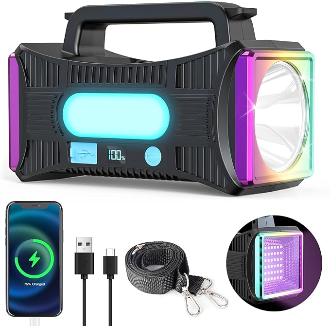 • 🏆【IP45 Waterproof, Suitable for Various Environments】preventing splashing from all angles. It is suitable for outdoor environments and harsh weather conditions. Made of high-quality aluminum alloy and ABS material. It has a large and comfortable handle and diagonal shoulder straps, making it very convenient for hunting, boating, camping, dog walking, cave exploration, search, emergency situations, and home use.