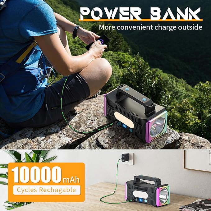 • 🏆【Strong Electrical Energy Reserves and Outdoor Power Bank】Built-in 10000mAh high capacity rechargeable battery allows 10-50 hours of battery life; 0-100% battery remaining display making you prepared; It can also serve as an outdoor power bank to charge your phone, making it an essential helper for your travel.