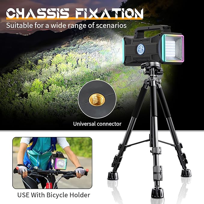 • 🏆【Portable Spotlight Flashlight】 The packaging includes a shoulder strap, which can save you effort when working in the field. The bottom of the lamp has a universal tripod screw hole, which can fix the lamp and is also a necessary good tool for families.