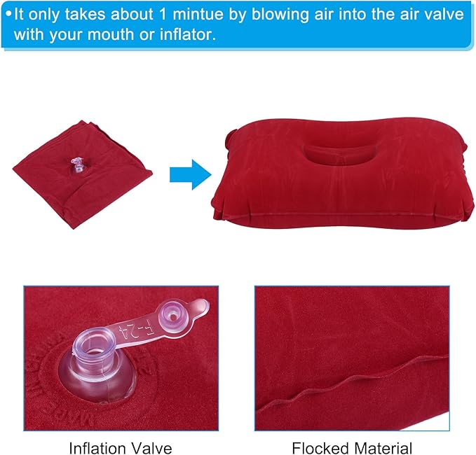 • Color: Dark Blue, Red; Overall Size: 43 x 28cm / 17 x 11 inch (L*W); Package Content: 4 x Inflatable Travel Pillow (Each Color for 2 Pcs)