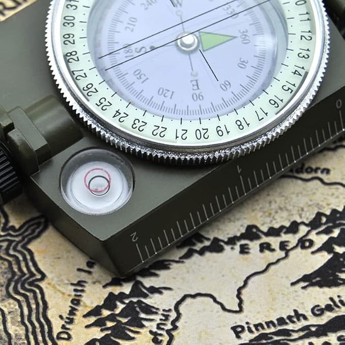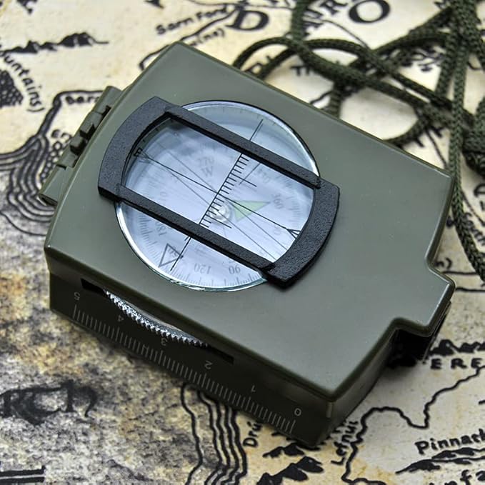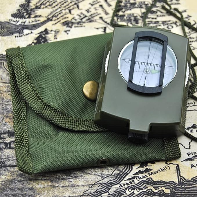 Military Lensatic Sighting Compass Waterproof and Shakeproof with Map Measurer Distance Calculator, Pouch for Camping, Hiking