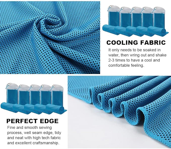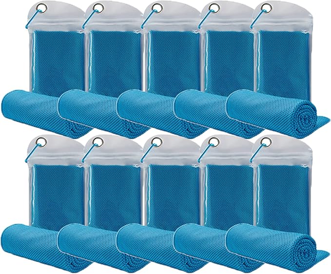 10 Pack Cooling Towels Bulk Microfiber Ice Towel Quick Dry Breathable Chilly Sweat Towel Stay Cool Towel for Neck Face Yoga Gym Workout Running Pilates Beach with Carabin Bag, 40x12'', Blue