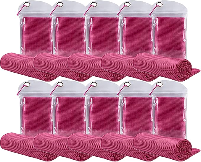 10 Pack Cooling Towels Bulk Microfiber Ice Towel Quick Dry Breathable Chilly Sweat Towel Stay Cool Towel for Neck Face Yoga Gym Workout Running Pilates Beach with Carabin Bag, 40x12'', Rose