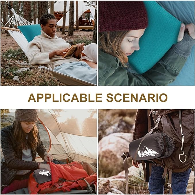 • 【Easy to Carry Travel Pillow】Our premium travel pillow is fully adaptable to all kinds of trips, like traveling, camping, fishing, backpacking, hiking, beach, festival, or other outdoor activities. Whether you're sleeping on a plane, a hammock, a beach, in a car, RV, or under a tent, hotel for a "Power Nap" in the office or on the couch, our travel pillow will give you a great night's sleep wherever you lay your head.