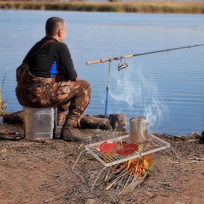 • 【Multi-Purpose Campfire Grill】The bushcraft grill is suitable to use over open fire, charcoal, gas or camping stove. Make delicious outdoor feasts, boil water, and brew coffee over a campfire on top of this freestanding backpack camp grill.