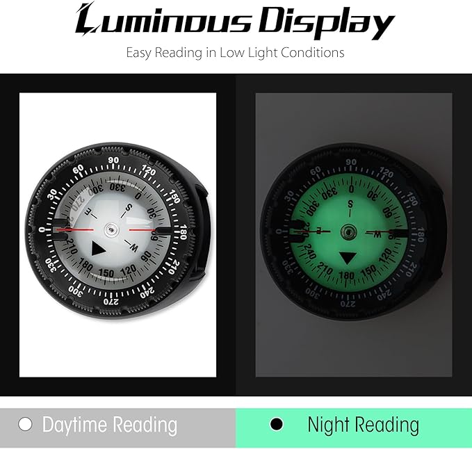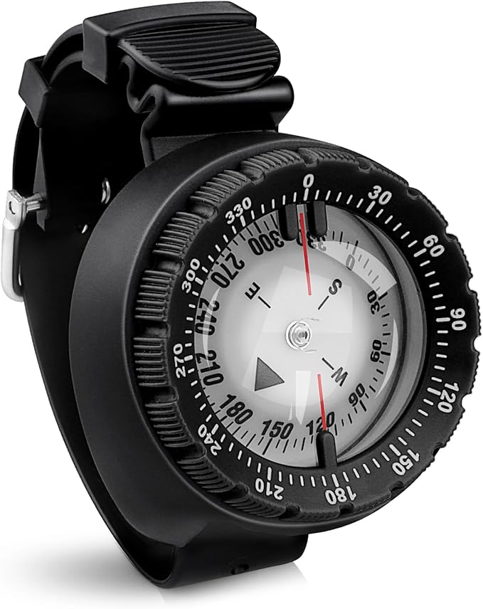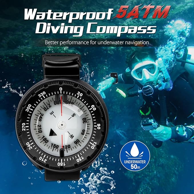 • SCUBA DIVING COMPASS - Our latest dive compass provides 50m waterproof performance for underwater navigation and includes a wide wrist mount strap to wear on your wrist while diving for hands-free navigation that's easily accessible.