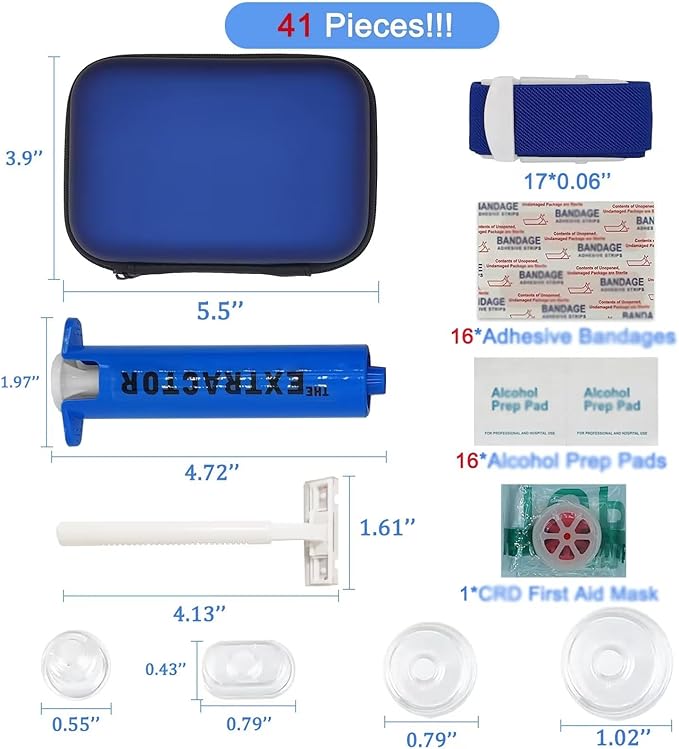 • 【Professional Design】The venom extractor kit is very portable. The rattlesnake bite kit comes with four sizes of extraction cups to help minimize the spread of venom until it is fully extracted.