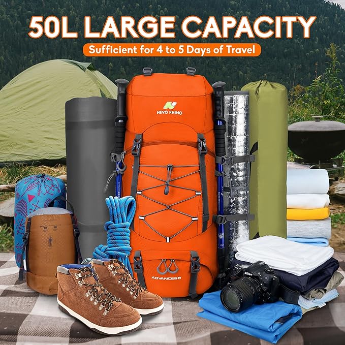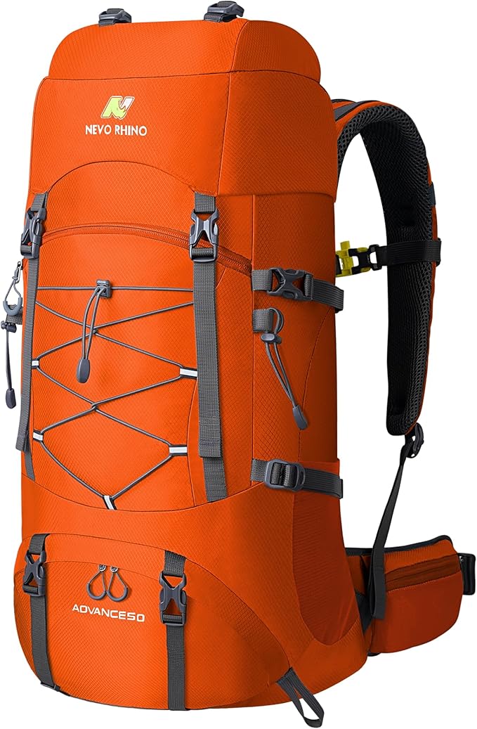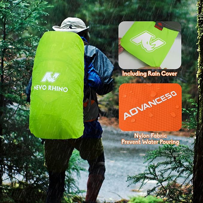 N NEVO RHINO Waterproof Hiking Backpack 50L/60L, Camping Backpack with Rain Cover, Hiking Travel Mountaineering Backpack