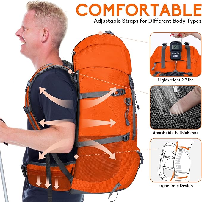 • Waterproof and Durable: Climbing backpack is made of high quality nylon fabric, which is tear resistant, scratch resistant, wear resistant. You can also use our rain cover (our hiking bag comes with a rain cover at the bottom) to further protects your valuables from heavy rain and keeps everything dry