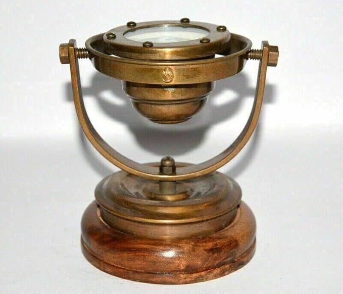 • Antique brass nautical gimbal compass vintage ship's binnacle gimballed compass