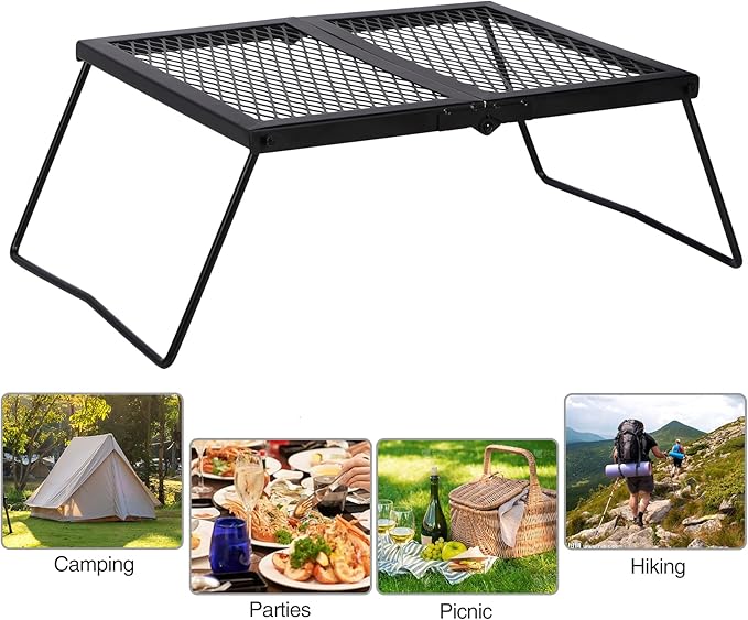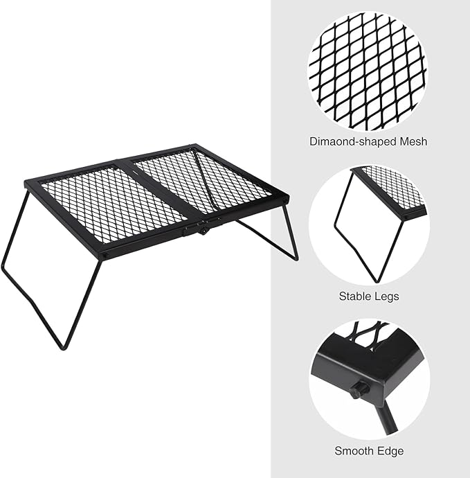 • Durable & Stable: The grill grate is made of high quality iron material, which is durable and corrosion resistant. The curved legs make the structure stable enough when open to use, easy to set up in seconds.
