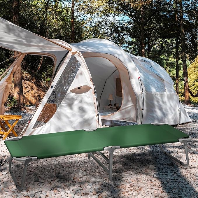 • Durable Lightweight Design - Experience the perfect blend of durability and lightweight design with our camping cot's metal frame and 600D Oxford fabric. This ensures it will withstand the elements and last for years of adventure.