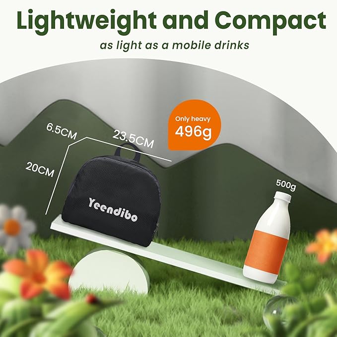 • Lightweight and Compact:Only 496g as light as a mobile phone. It folds down to a compact size of 23.5*20*6.5cm, making it effortless to store and carry anywhere