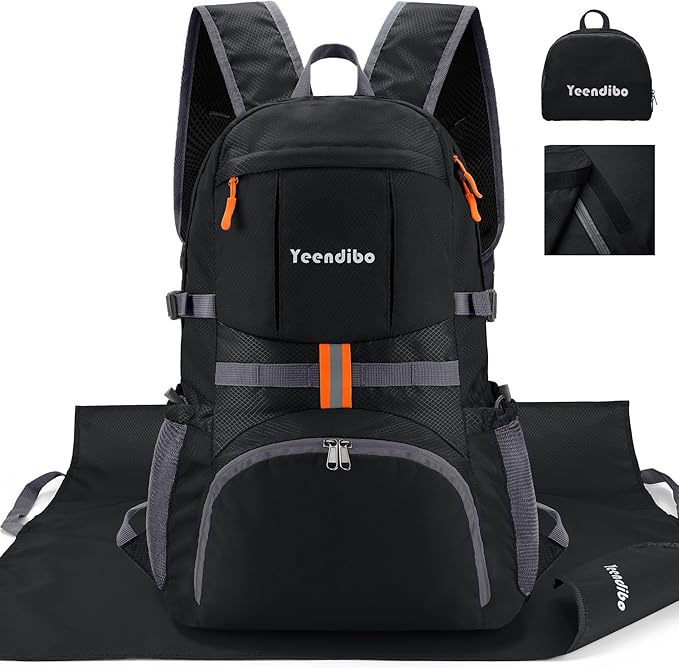 33L Waterproof Hiking Backpack with Portable-Rest Station for Camping/Travel/Outdoors, Versatile & Lightweight Foldable Daypack for Men/Women (Black, Waterproof)