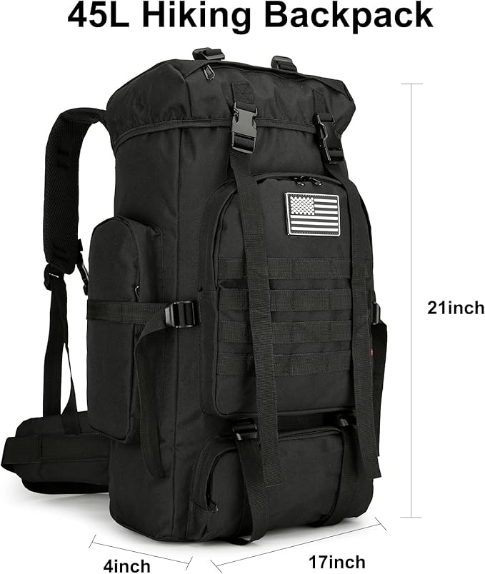 45L Hiking Backpack Camping Rucksack Molle Military Backpack for Outdoor Traveling (Black)