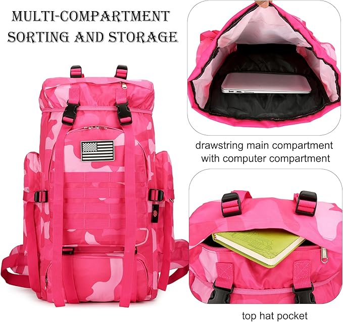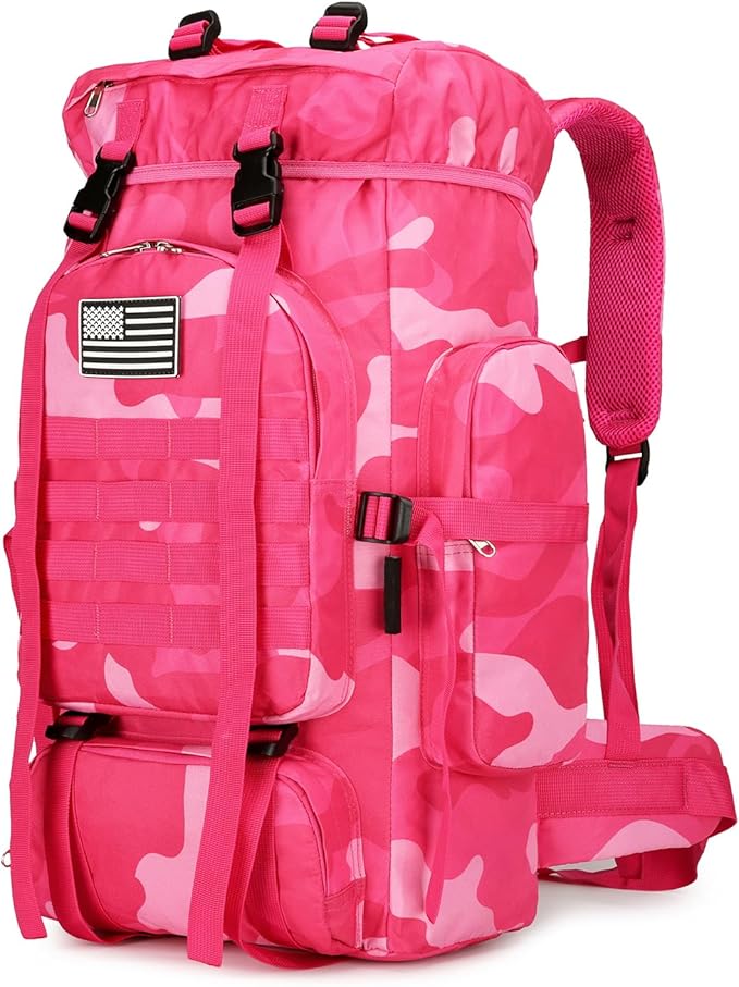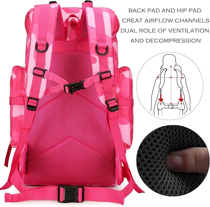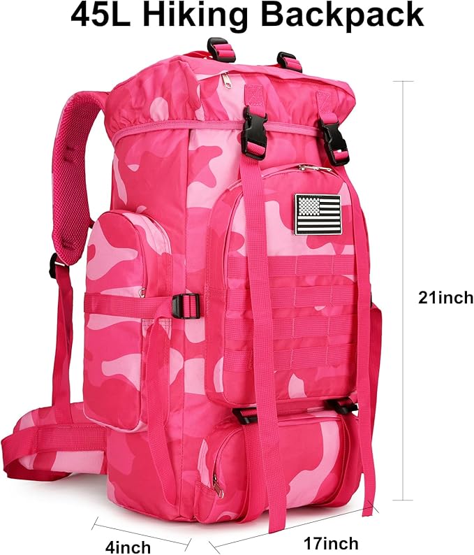 45L Hiking Backpack Camping Rucksack Molle Military Backpack for Outdoor Traveling (Rose Camo)