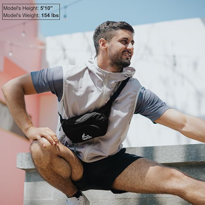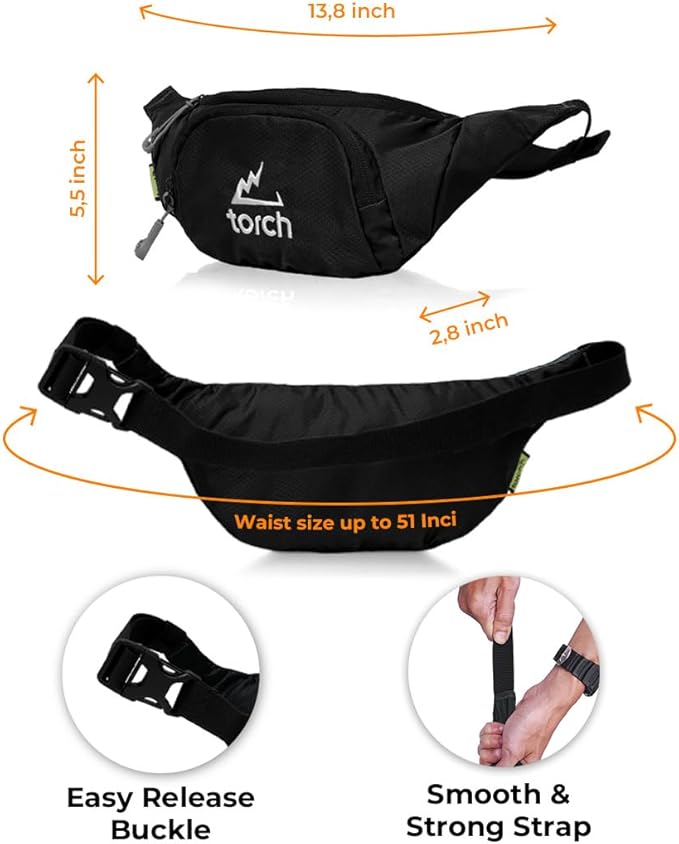 TORCH Mens Fanny Pack - Hip Pack For Men Women with Compass Survival, Small Crossbody Fanny Packs for Walking, Biking, Outdoor, Workout - Vallejo (Black)