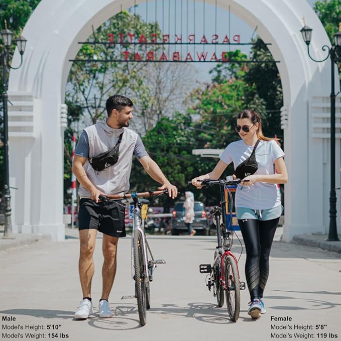 • [LIGHTWEIGHT AND COMFORTABLE] Weighing just 0.22 pounds, this waist bag is not only ultra-light but also comfortable to wear, thanks to its adjustable strap that fits up to 51". With dimensions of 13.8" L x 2.8" W x 5.5" H, this compact yet spacious mini crossbody bag is perfect for carrying your essentials, such as snacks, a 280ml water bottle, keys, and a phone.